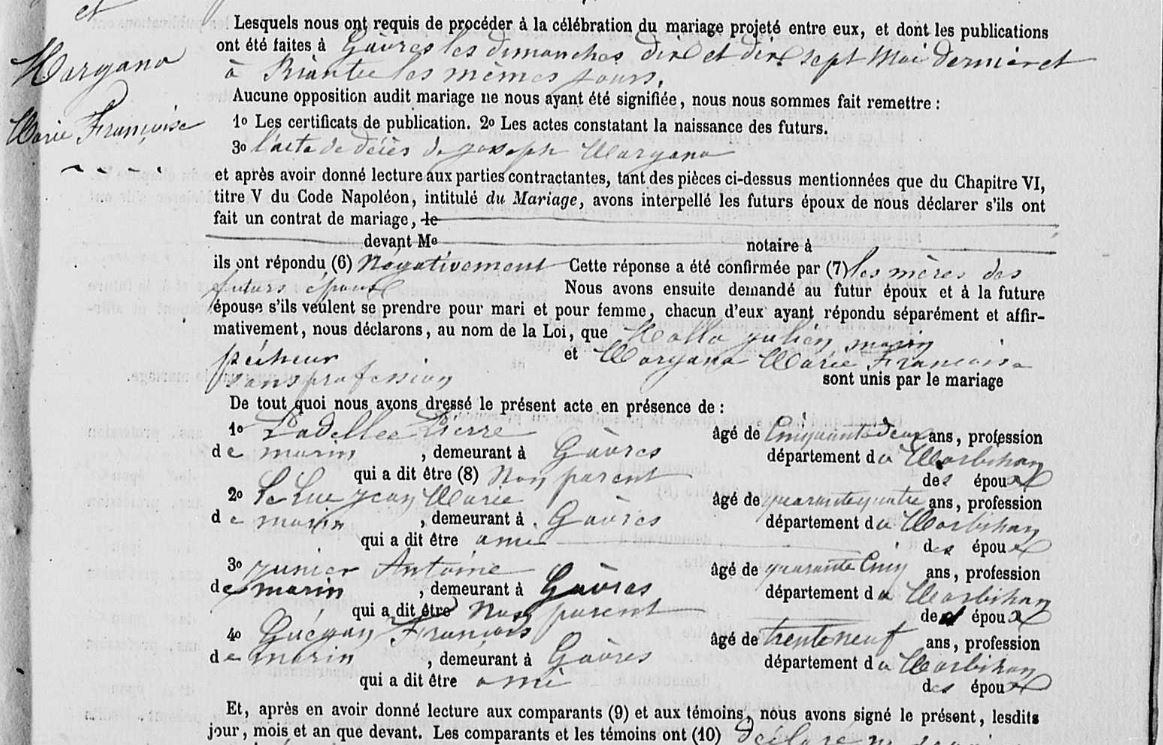 Mariage MOLLO Julien MARGANA Marie Françoise - 1874 - Gâvres - 2 |