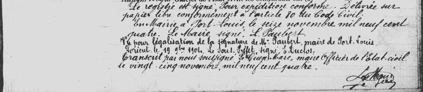 | 2 Note, Naissance : Un décès d'une Marie Julienne GAHINET notifié le 08/02/1903 à Riantec, c'est une autre. |