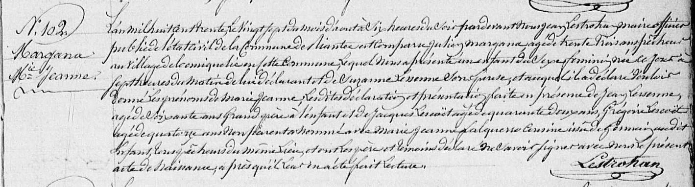 | Naissance MARGANA Marie Jeanne - 1830 - Riantec |