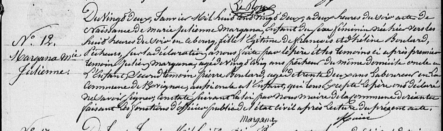 | Naissance MARGANA Marie Julienne - 1837 - Riantec |