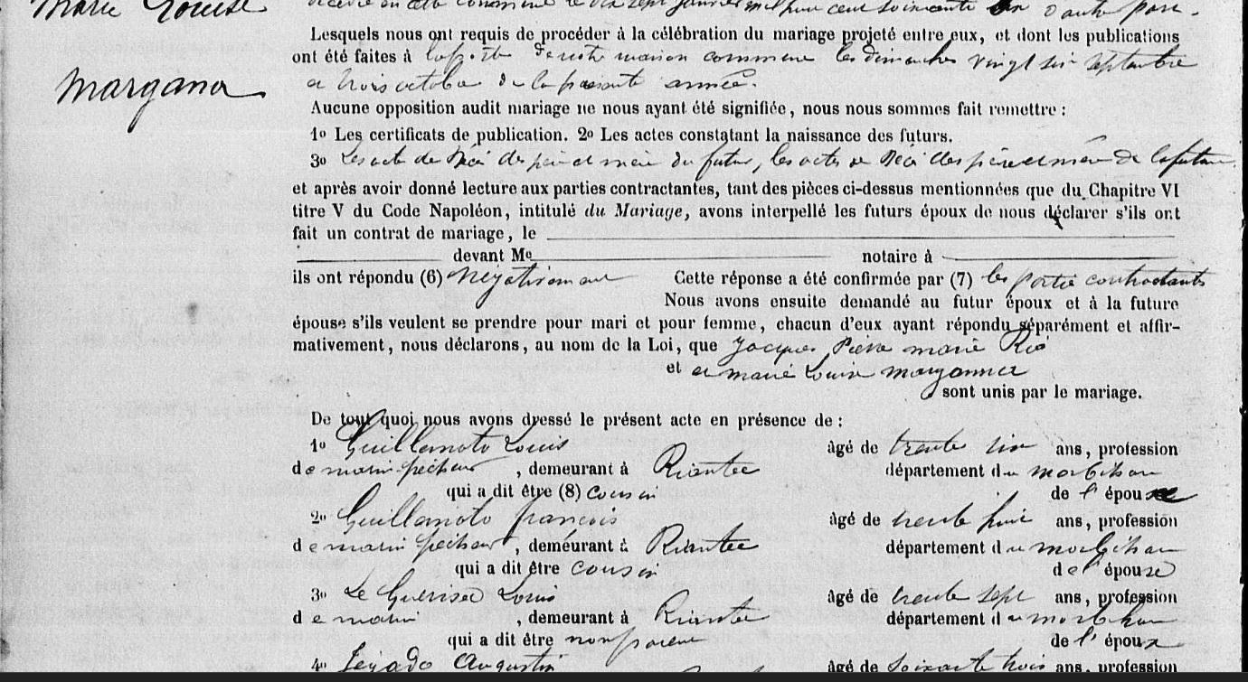 Mariage RIO Jacques Pierre Marie MARGANA Marie Louise - 1880 - Riantec - 2 |