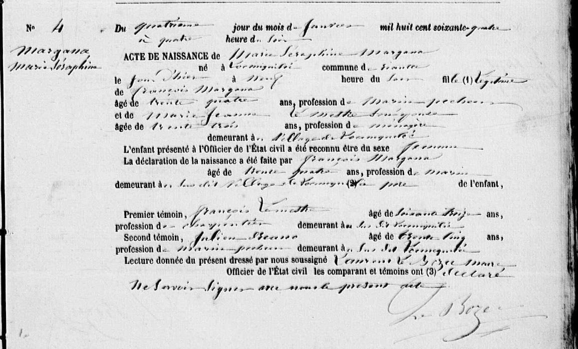 | Naissance MARGANA Marie Séraphine - 1864 - Riantec |