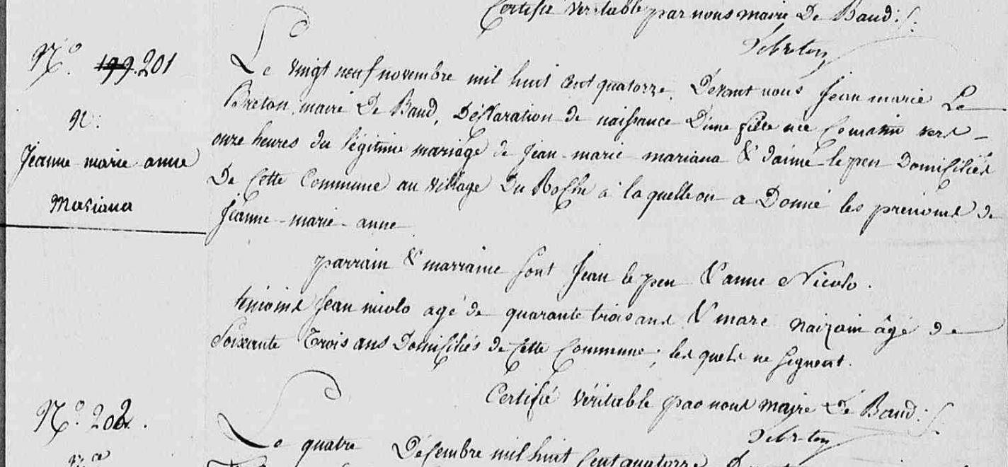 | Naissance MARIANA (MALGUENAC) Jeanne Marie Anne - 1814 - Baud - 0 |