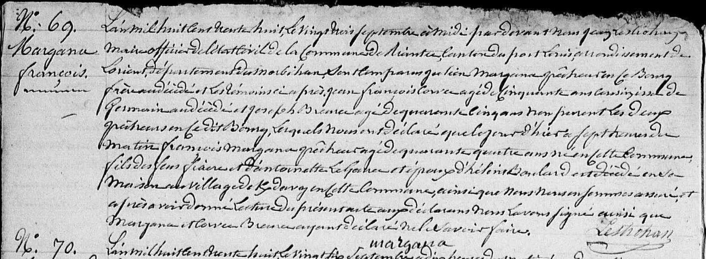 | Décès MARGANA François - 1838 - Riantec |
