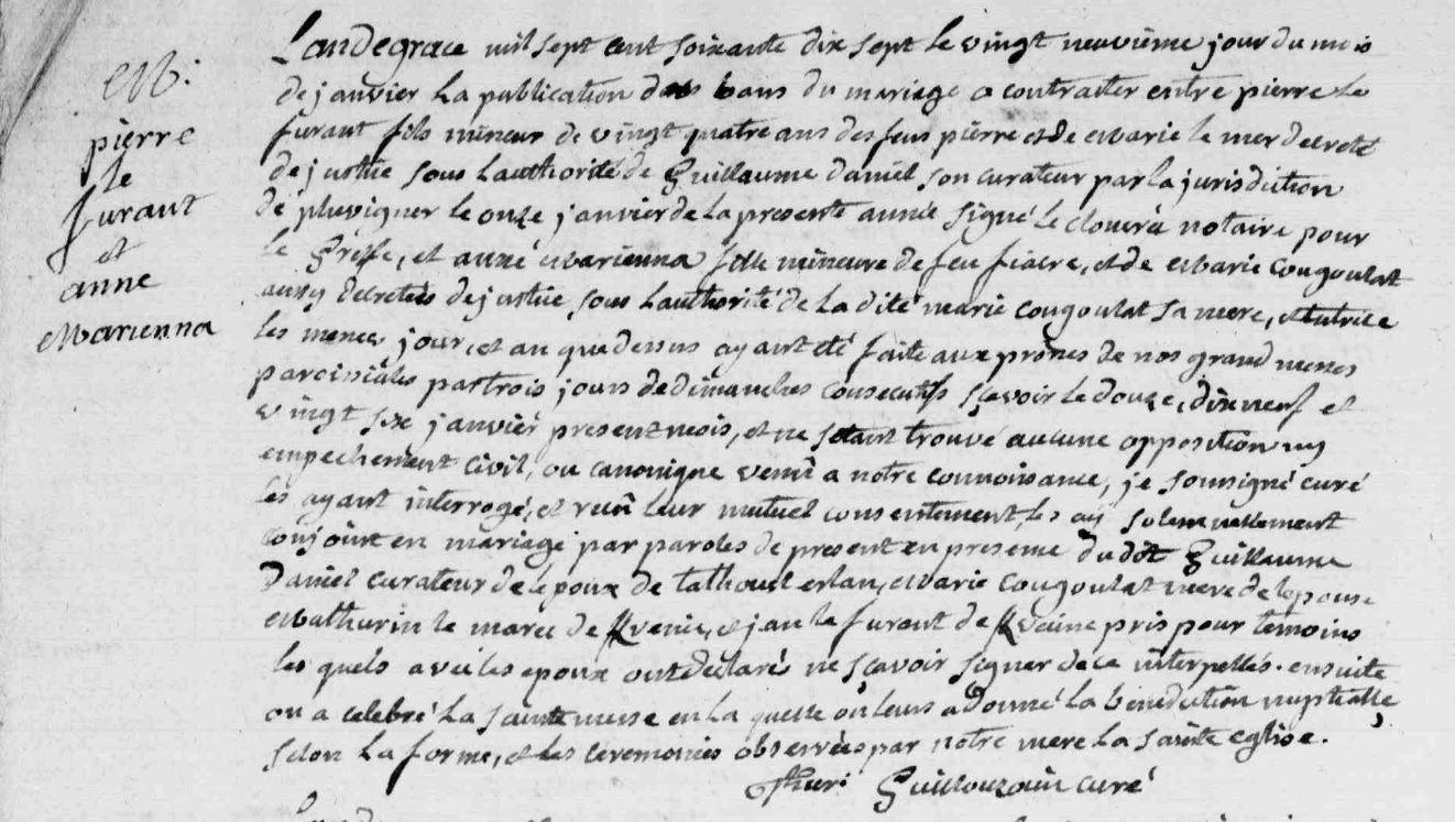 Mariage FURAUT (LE) Pierre MARIENNA Anne - 1777 - Pluvigner |