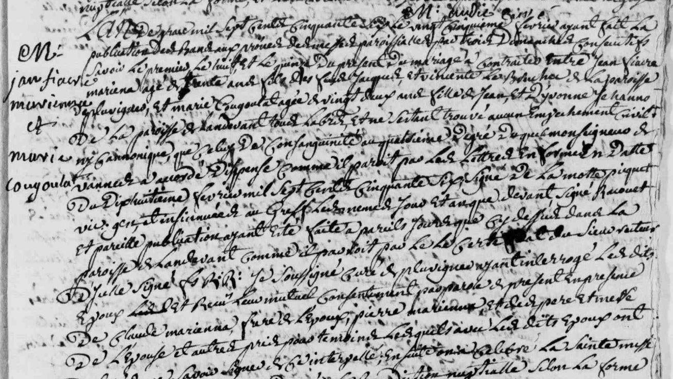 Mariage MARIENNA Jean Fiacre COUGOULAT Marie - 1756 - Pluvigner - 1 |