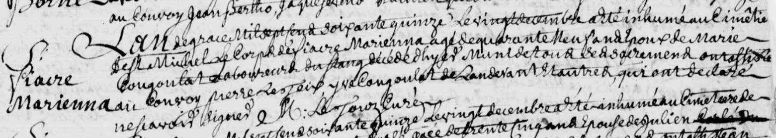 Sépulture MARIENNA Jean Fiacre - 1775 - Pluvigner |