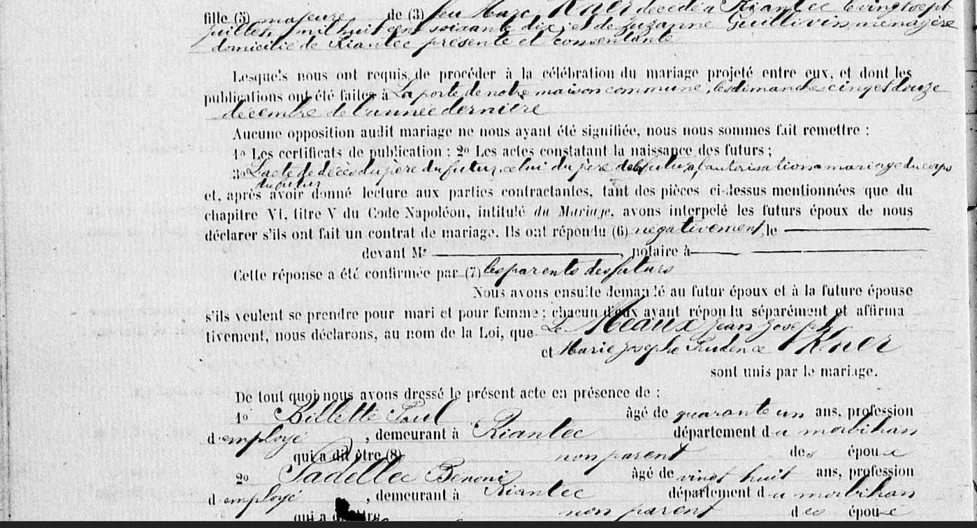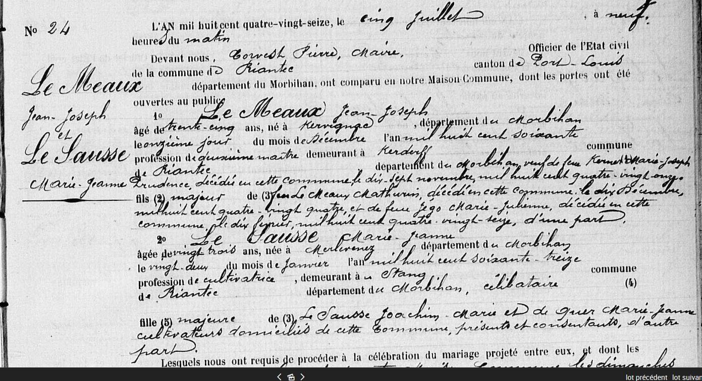 Mariage MEAUX (LE) Jean Joseph SAUSSE (LE) Marie Jeanne - 1896 - Riantec - 2 |