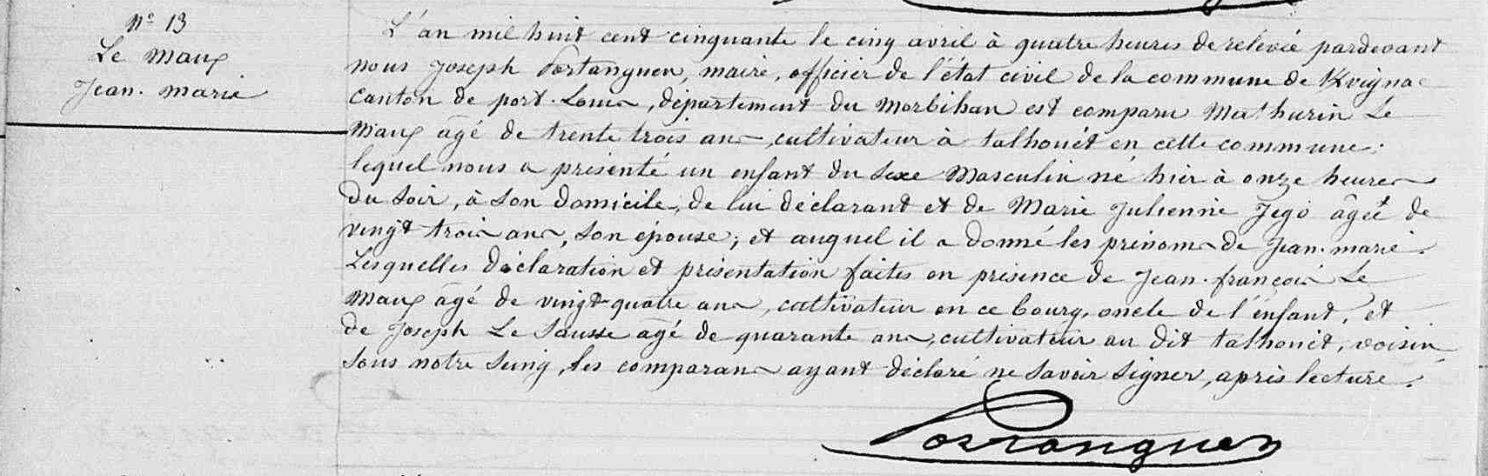 | Naissance MAUX (LE) Jean Marie - 1850 - Kervignac |