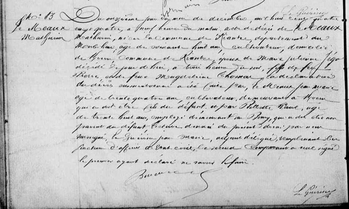 Décès MEAUX (LE) Mathurin - 1884 - Riantec |