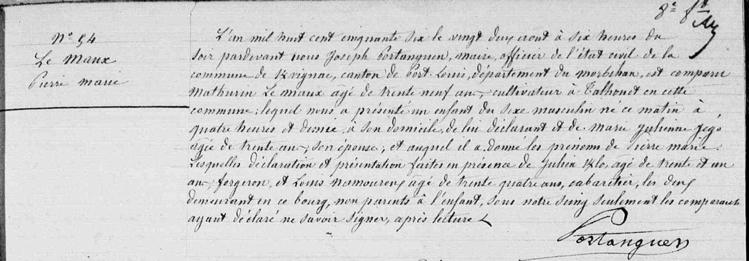 | Naissance MAUX (LE) Pierre Marie - 1856 - Kervignac |