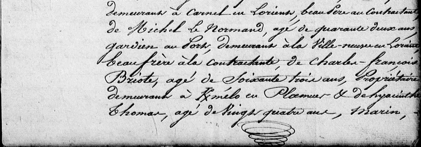 | Mariage : Date : 23/04/1843 Lieu : Ploemeur (56) TALLEC (LE) Joseph, Second Maître Vétéran - Gardien flottant au port Il est né à Kervignac (56), Kergatamignan 21/01/1815. + 08/12/1892 Lorient (56), N° 2 Rue de la Belle Fontaine, - - 16:00 - NO à l'âge de 77 ans. |