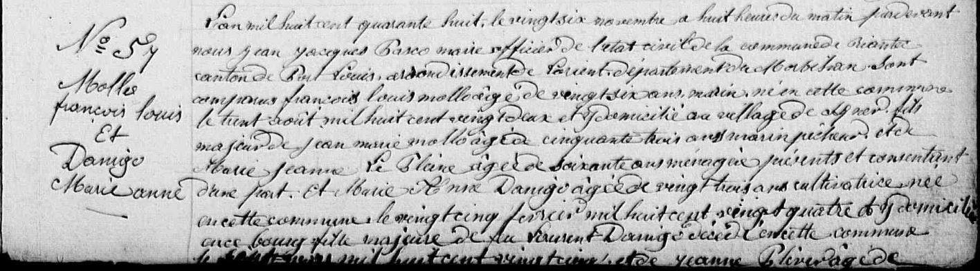 | Mariage MOLLO François Louis DANIGO Marie Anne - 1848 - Riantec - 1 |