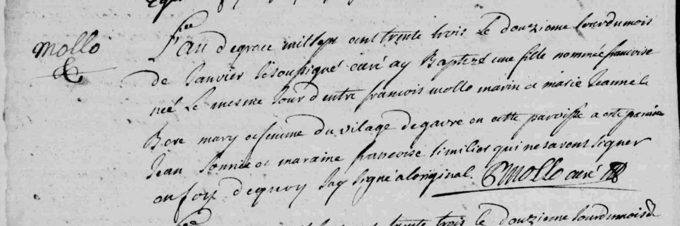 | Baptême MOLLO Françoise - 1733 - Riantec |