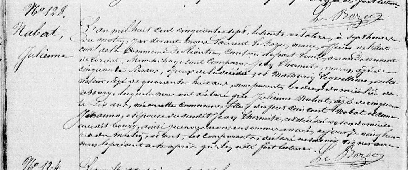 Décès NABAT (LE) Julienne - 1857 - Riantec |