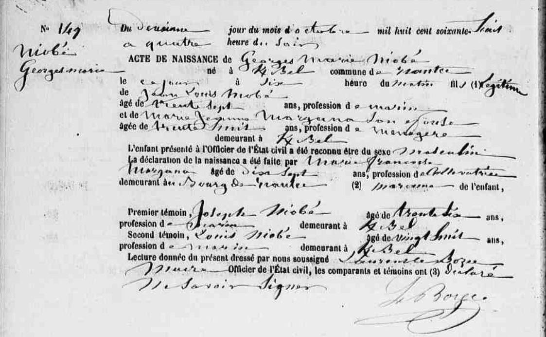 | Naissance NIOBE Georges Marie - 1868 - Riantec |