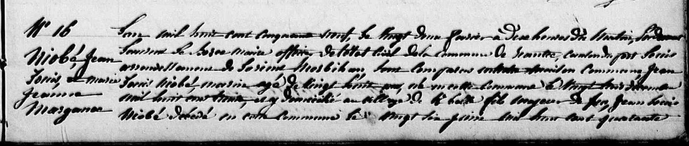 | - NIOBE Jean Louis (Naissance : 1800 Décès : 1848) - GALLO (LE) Marie Renée (Naissance : 1800) |