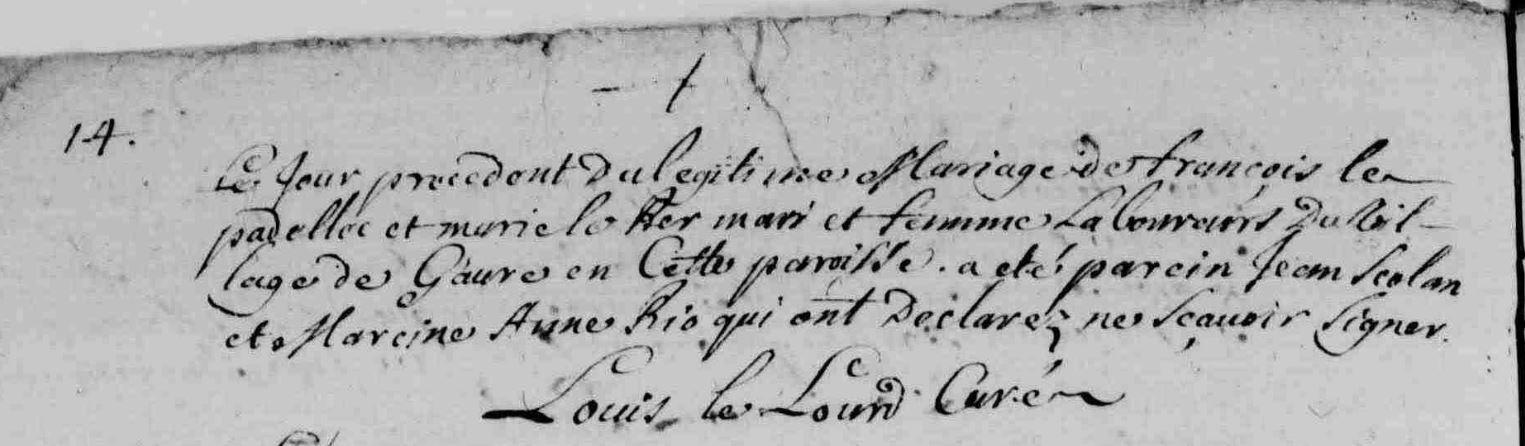 | Frère(s) / soeur(s) de PADELLEC (LE) Louis : - PADELLEC (LE) François (Naissance : 1686 Décès : 1778) Union 1718 : BER (LE) (BERRE) Marie - PADELLEC (LE) Marie, Sosa 1009 (Naissance : 1700) Union 1724 : JEHANNO Jean |