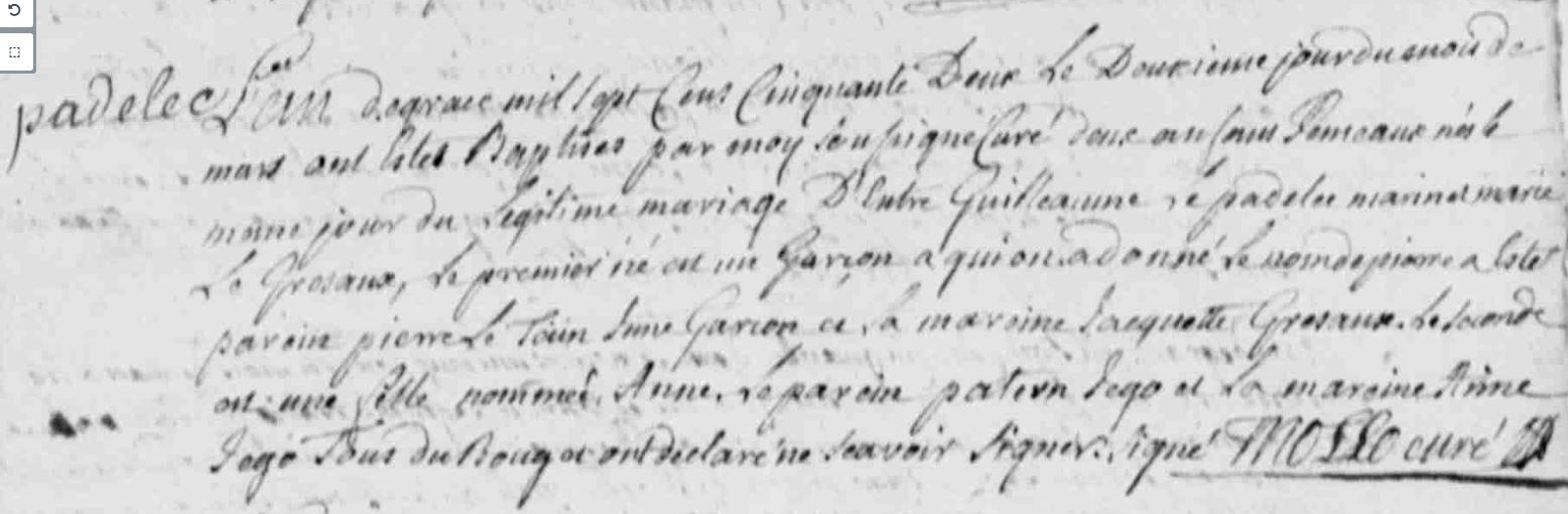 | Baptême PADELLEC (LE) Anne - 1752 - Riantec |