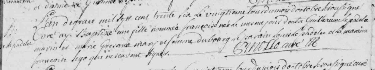 | Baptême PADELLEC (LE) Françoise - 1736 - Riantec |