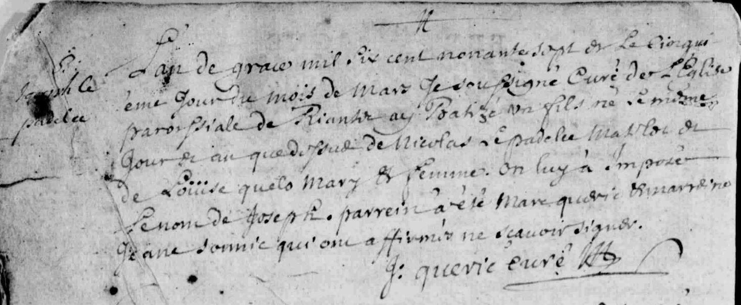 | Baptême PADELLEC (LE) Joseph - 1697 - Riantec |