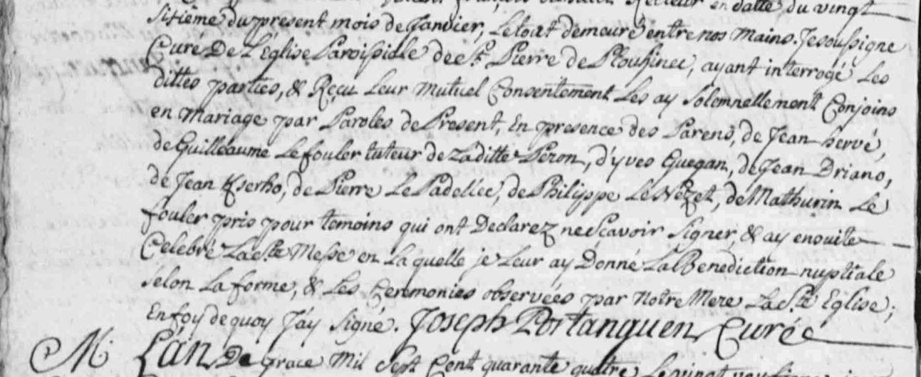 Mariage HERVE Jean PERON Marie - 1744 - Plouhinec - 2 |