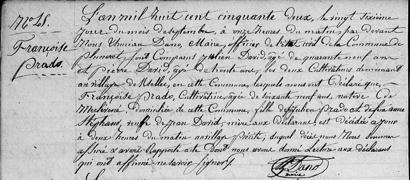| Décès PRADO Françoise - 1852 - Pluneret |