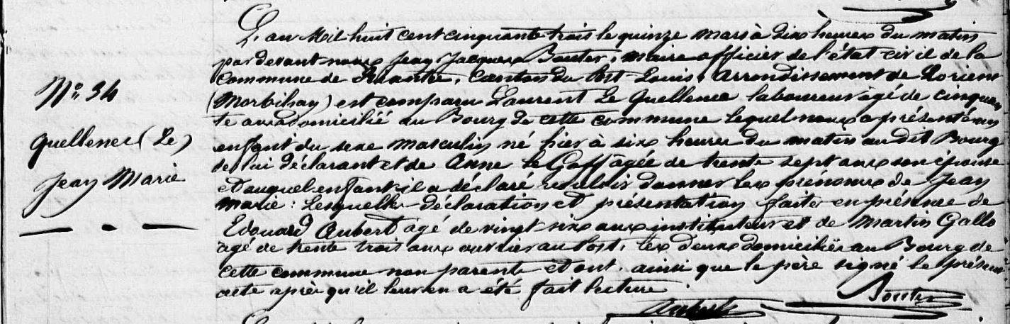 | Naissance QUELLENEC (LE) Jean Marie - 1853 - Riantec |