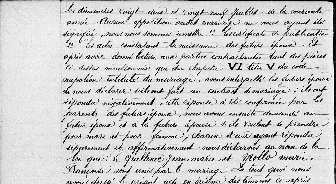 Mariage QUELLENEC (LE) Jean Marie MOLLO Marie Françoise - 1877 - Riantec - 5 |