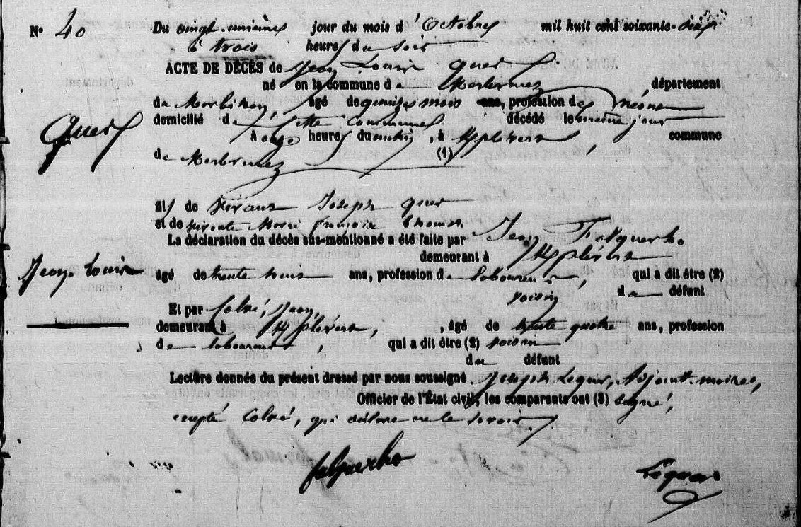 Décès QUER Jean Louis - 1870 - Merlevenez |