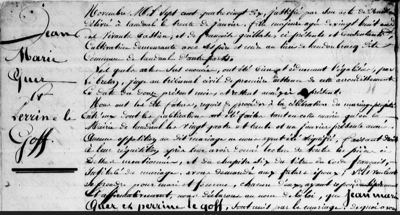 Mariage de QUER Jean Marie GOFF (LE) Perrine - 1819 - Nostang - 3 |