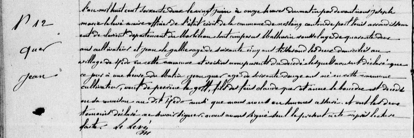 Décès QUER Jean - 1862 - Nostang |