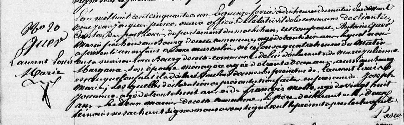 | Naissance QUER Laurent Louis Marie - 1851 - Riantec |