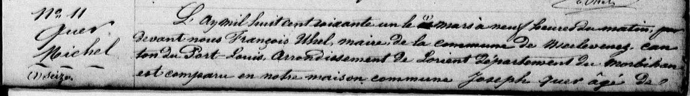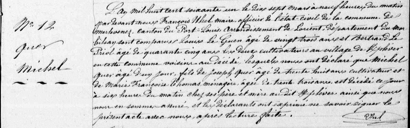 | Naissance QUER Michel - 1861 - Merlevenez - 1 |