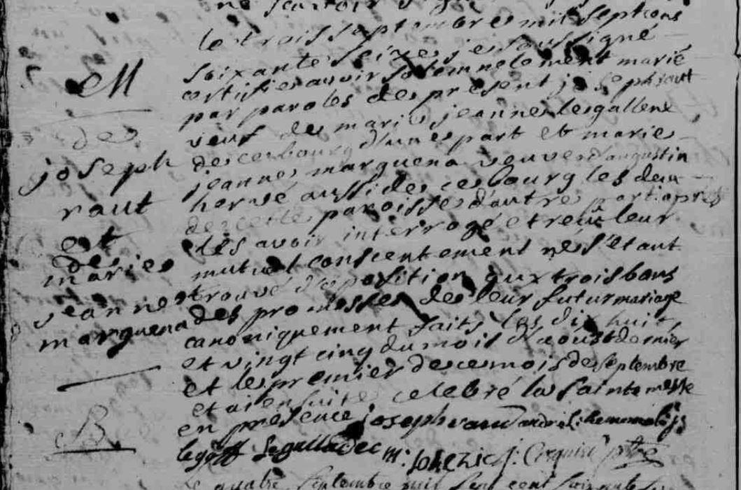 | Mariage RAULT Joseph MALGUENAC Marie Jeanne - 1776 - Baud |