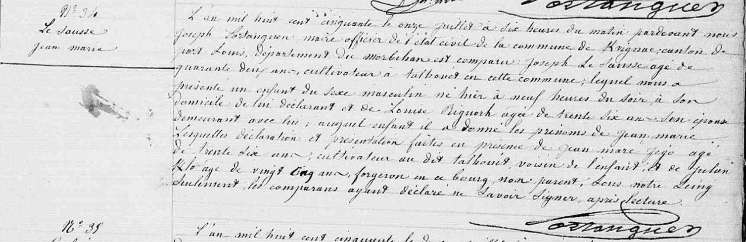 | Naissance SAUSSE (LE) Jean Marie - 1850 - Kervignac |