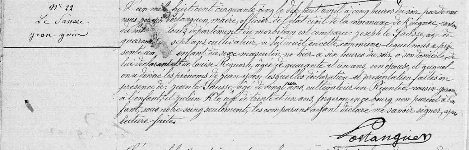 | Naissance SAUSSE (LE) Jean Yves - 1855 - Kervignac |
