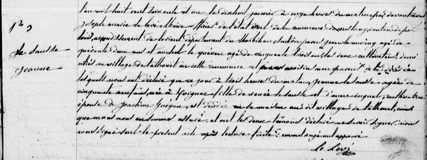 | Décès SAUSSE (LE) Jeanne - 1861 - Nostang |