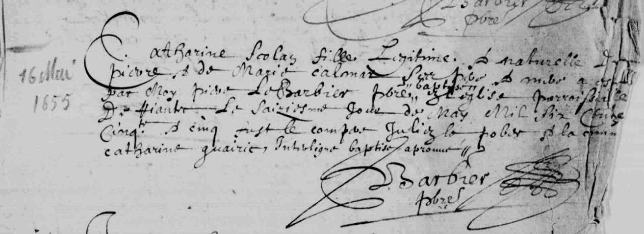 | Baptême SCOLAN Catherine - 1655 - Riantec |