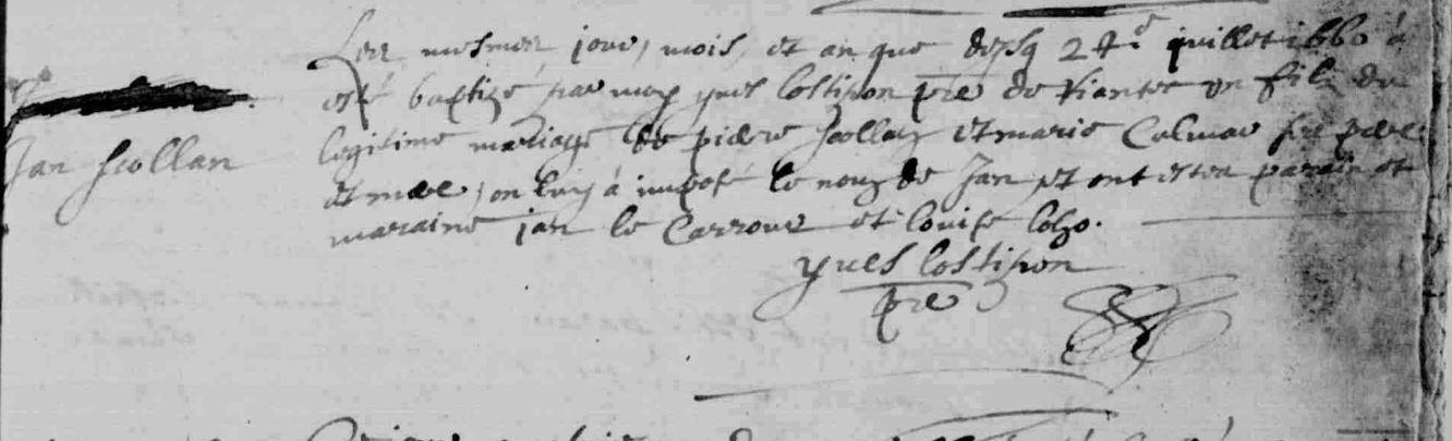 | Baptême SCOLAN Jan - 1660 - Riantec |