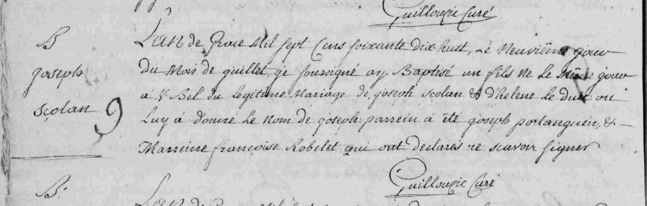 | Baptême SCOLAN Joseph - 1778 - Riantec |