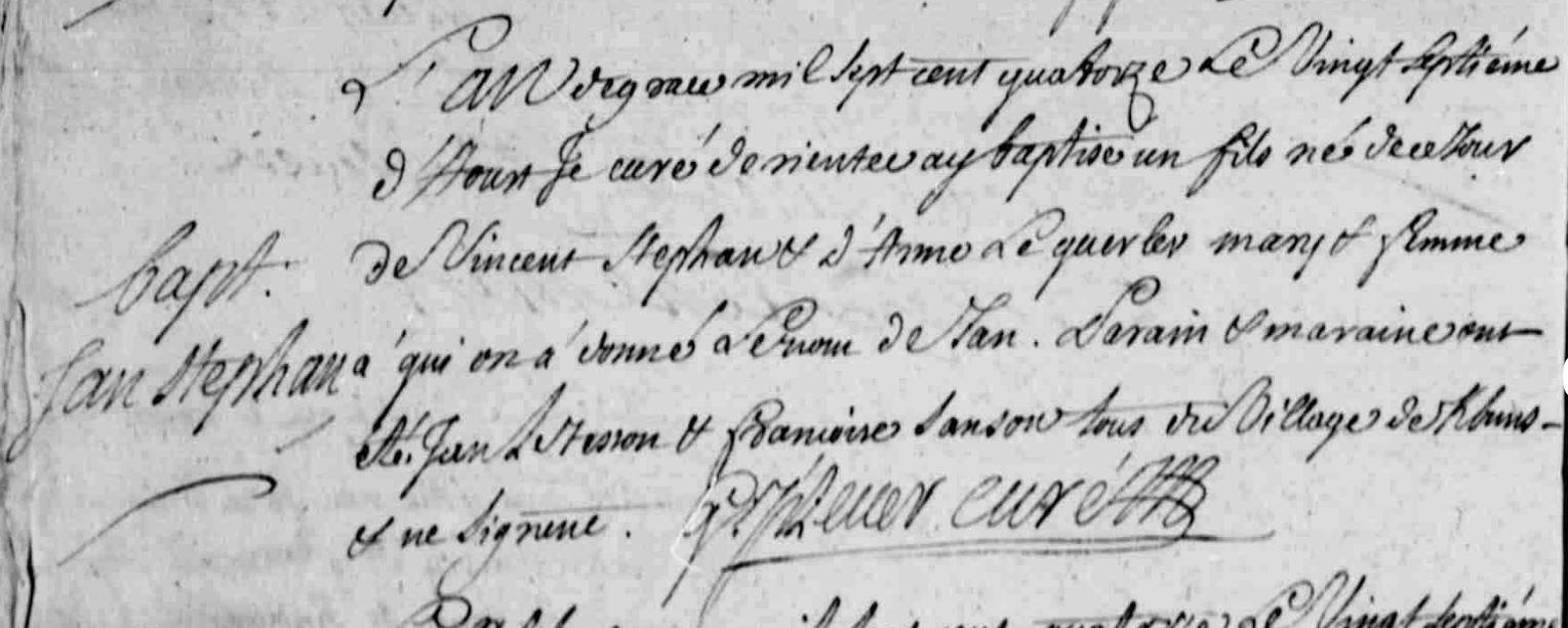 | Baptême STEPHAN Jan - 1714 - Riantec |