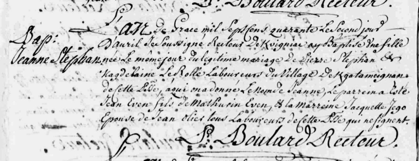| Baptême STEPHAN Jeanne - 1740 - Kervignac |