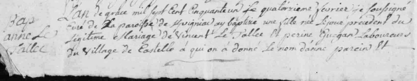 | Baptême TALLEC (LE) Anne - 1751 - Kervignac - 1 |