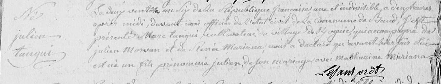 | 3. TANGUY Julien Naissance : Date : 18/02/1798 Lieu : Baud (56), Kerhoguic |