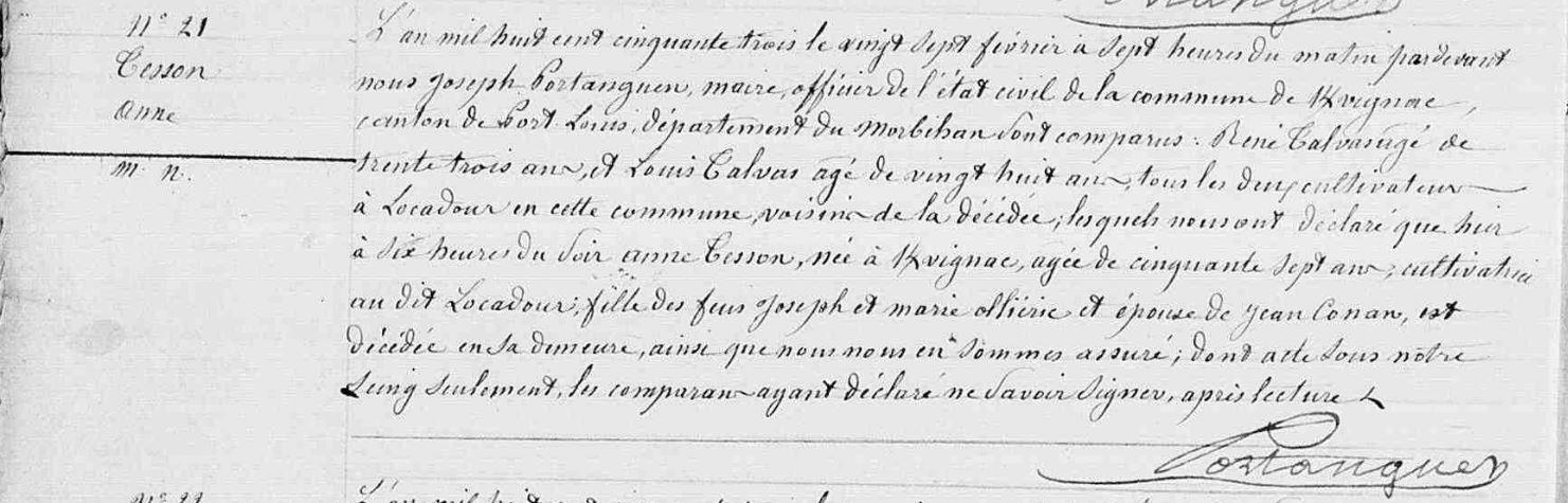 | Décès TESSON Anne - 1853 - Kervignac |