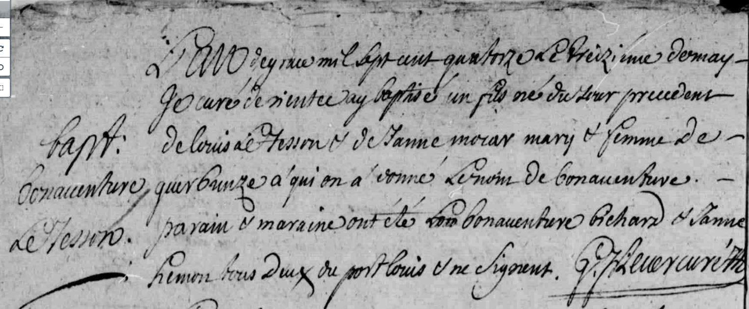 | Baptême TESSON (LE) Bonaventure - 1714 - Riantec |