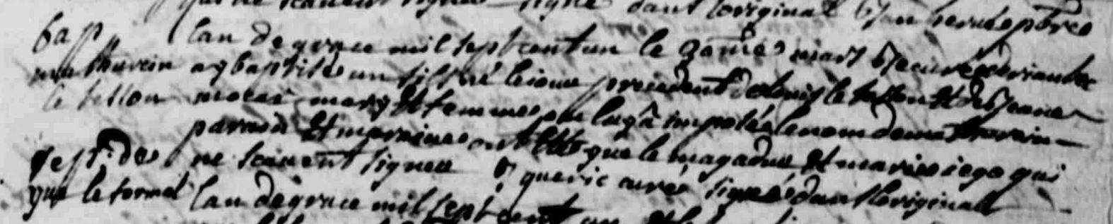 | 6. TESSON (LE) Isabelle Naissance : Date : ../../1640 Unie avec BARON (LE) Pierre. |
