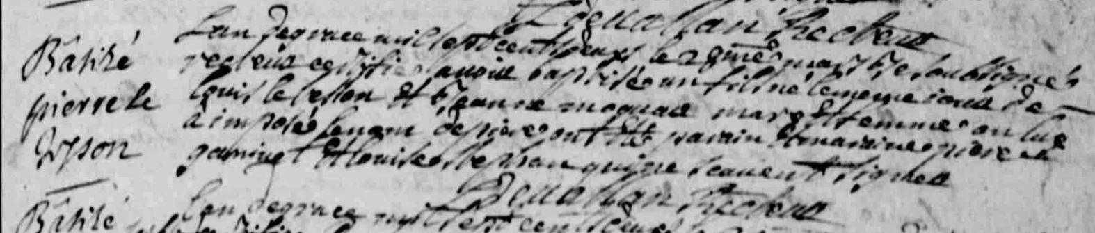 | Baptême TESSON (LE) Pierre - 1702 - Riantec |