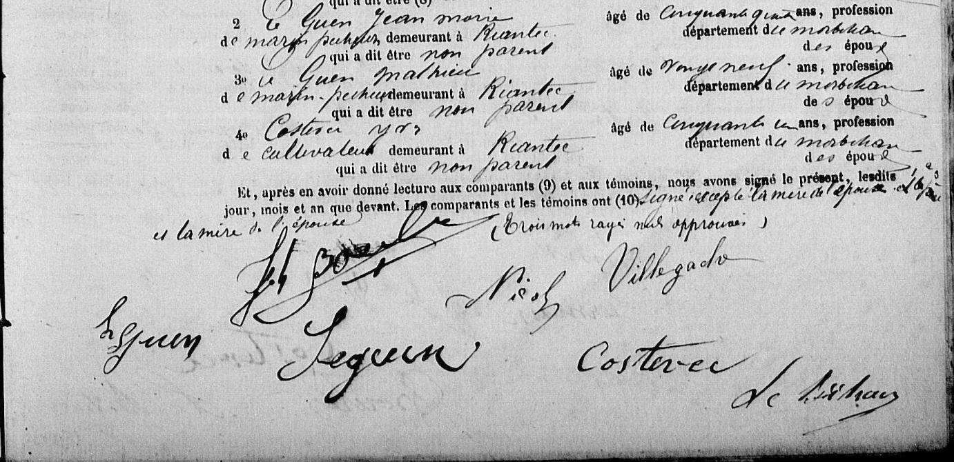 Mariage NICOL Louis Marie VILLEGACHE Marie Vincente - 1881 - Riantec - 2 |